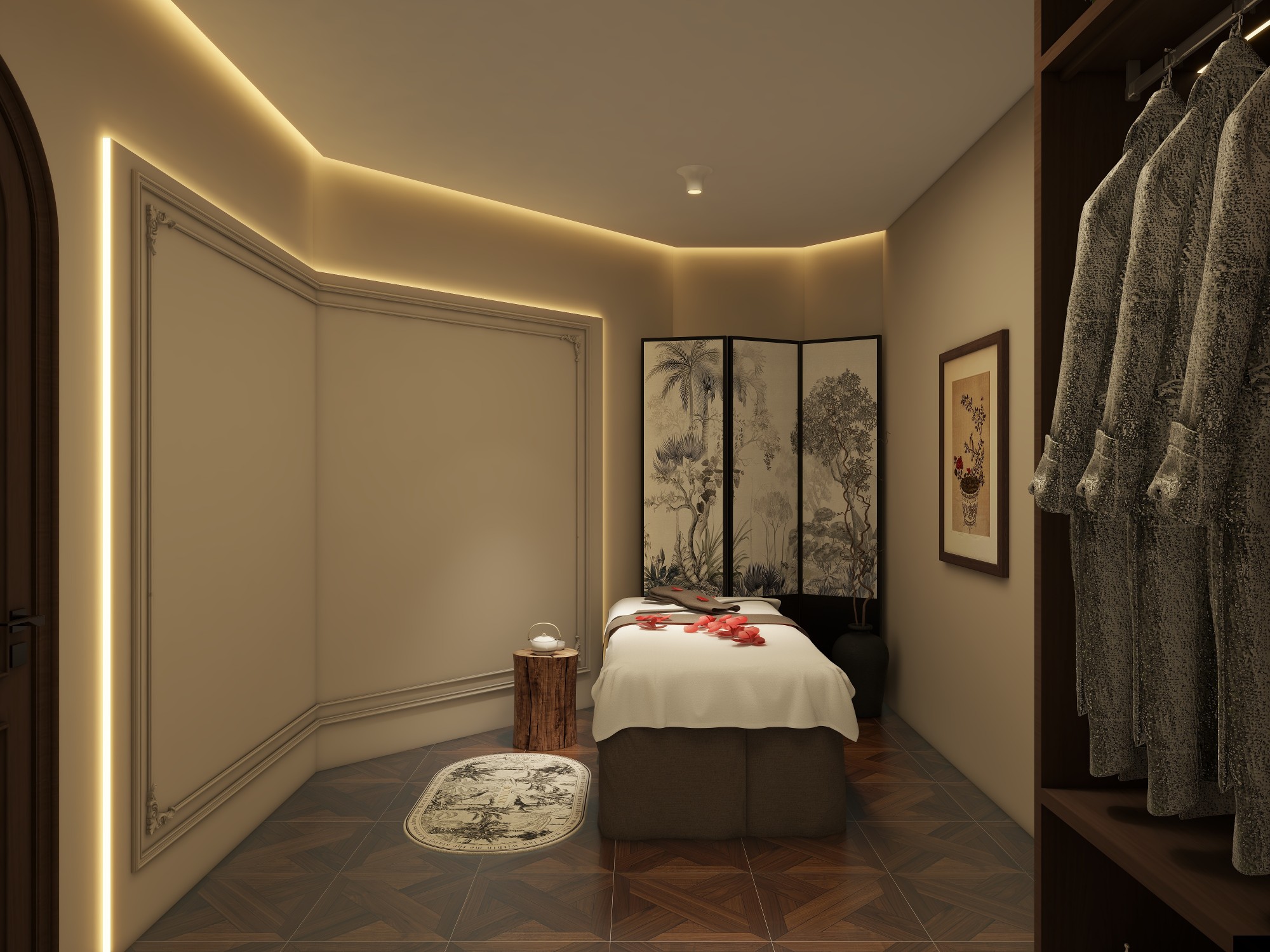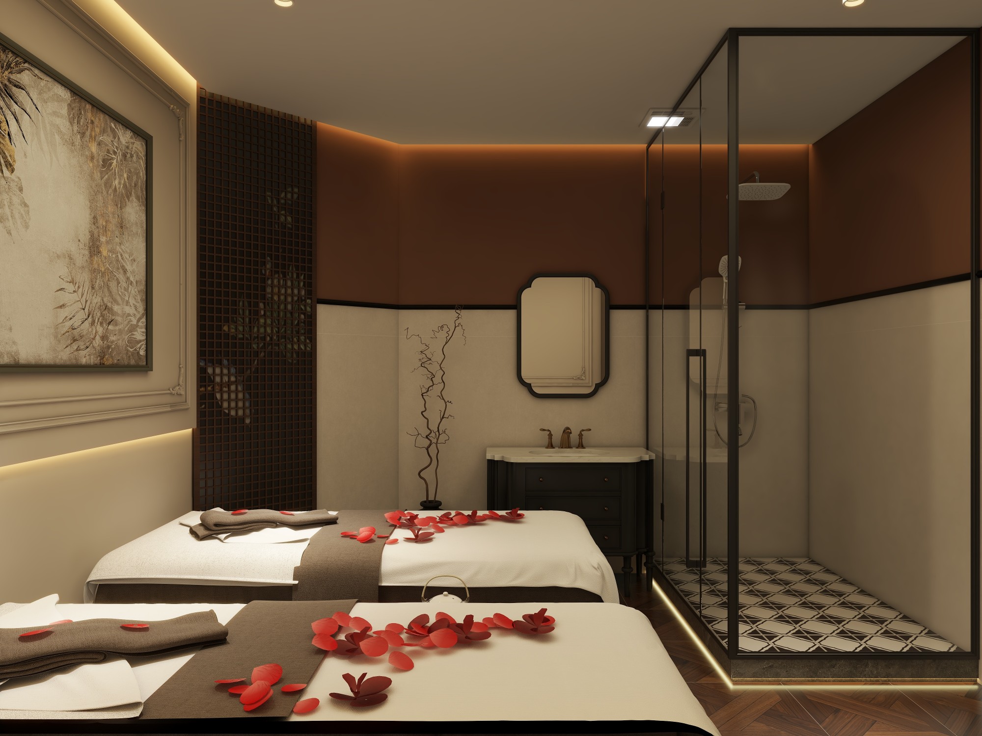 Veya Spa is dedicated to providing a serene and peaceful experience. Step into our tranquil oasis and be greeted by soft lighting, soothing music, and the refreshing scent of Moroccan essential oils. Our elegant decor combines traditional Moroccan elements with natural touches, creating a harmonious atmosphere that promotes deep relaxation. Each private treatment room is meticulously prepared to ensure your comfort and complete rejuvenation.